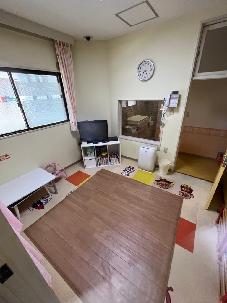 看護師、保育士で健康チェック、保育を担当いたします。病気に応じて医師による診察や処置を行うことがあります。また、水ぼうそう、おたふくかぜなどの伝染病疾患のお子さまは別の隔離室で保育いたします。